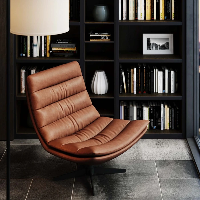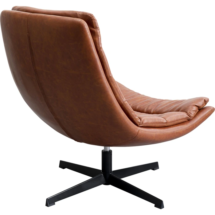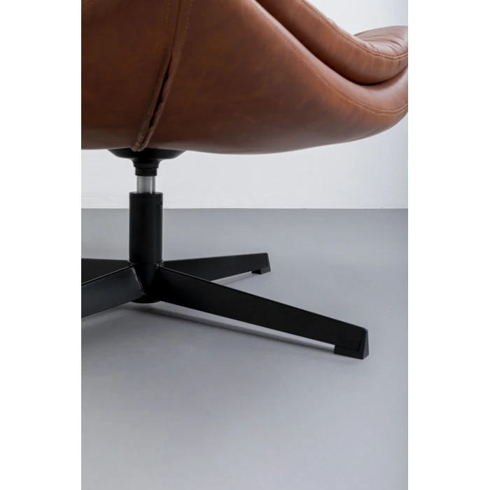 Brun snurrfåtölj med 360° rotation, bekväm stoppning och modern metallbas – stilren och lättplacerad i hemmets alla rum.