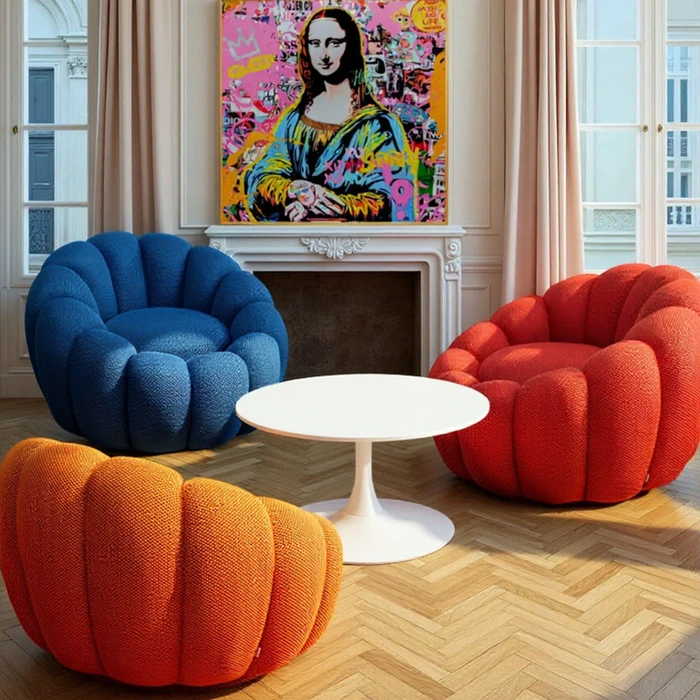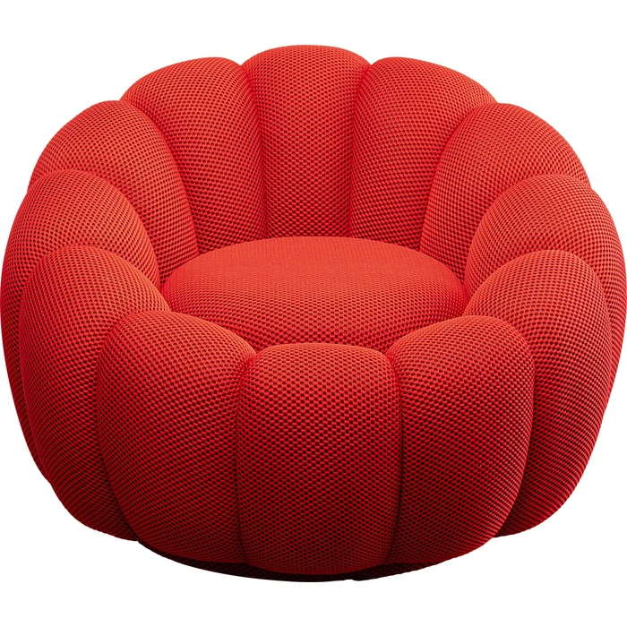 Snurrfåtölj Peppo Bloom i rött är en uttrycksfull loungestol som kombinerar modern design med hög komfort. Den rundade formen, den djupa sitsen och den mjuka stoppningen skapar en inbjudande känsla som passar perfekt i vardagsrum, loungeytor eller större sovrum.
