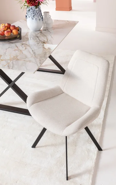 - En stilren snurrstol med lättskött chenilleklädsel i beige