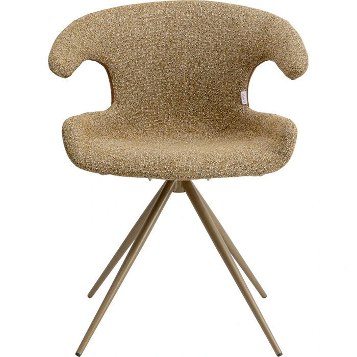 Stolen är utrustad med en roterbar funktion på upp till 180° samt automatisk återgång, vilket gör den både praktisk och flexibel i vardagen. Den stabila stommen i lackerat stål kombineras med mjuk stoppning och slitstark klädsel för långvarig komfort och hållbarhet. Varje exemplar är handgjort och får därmed en unik karaktär.