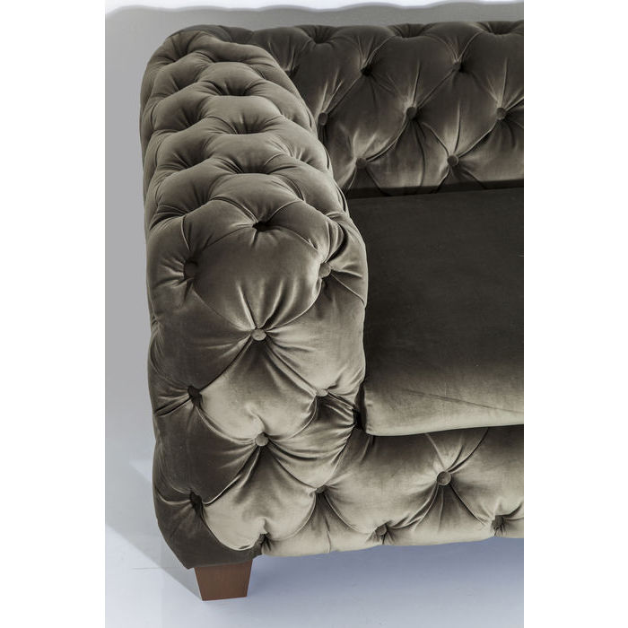 Soffa Desire Khaki - En lyxig loungekänsla i rummet ger den här förföriskt glamourösa önskesoffan med sin sofistikerade glans i fin mjuk polyestersammet! Som en lite mera slimmad hyllning till legendarisk Chesterfielddesign är den här 3-sitssoffan med utsökt sittkomfort. En perfekt soffa för alla älskare av god design! Finns också som fåtölj och i olika kulörer. Vi skickar gärna tygprov!