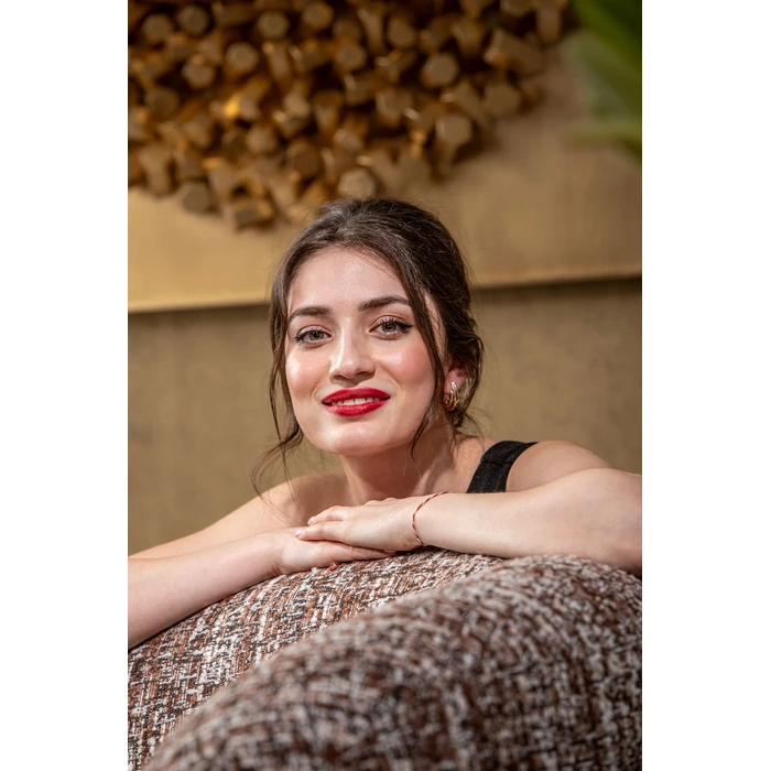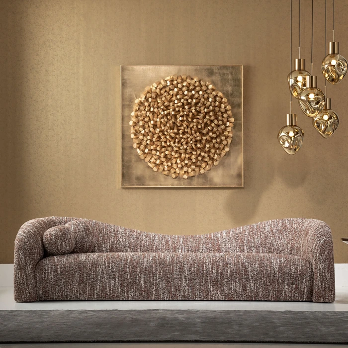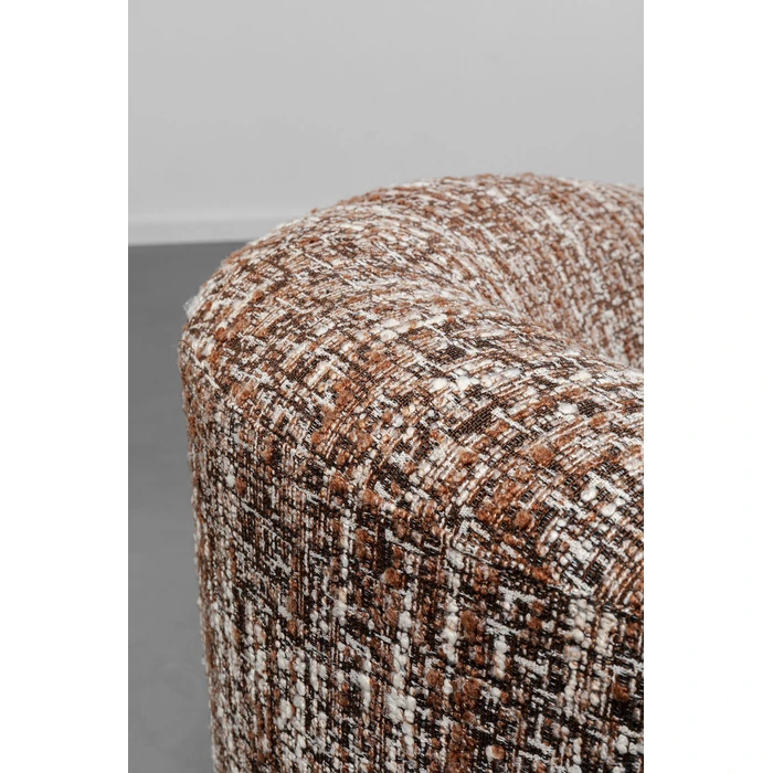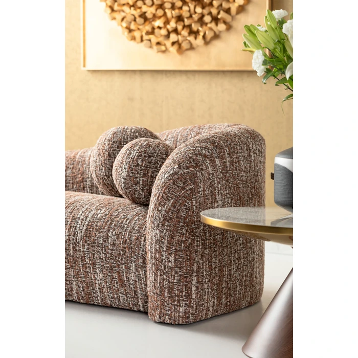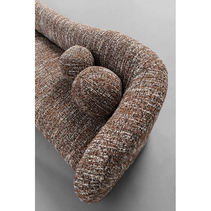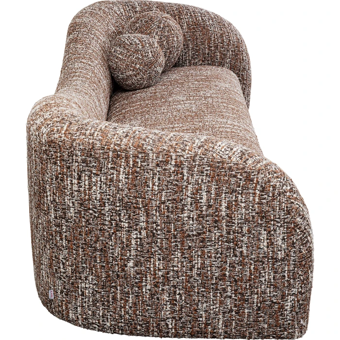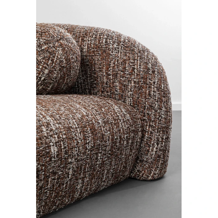 Elegant 3-sits i varm brun melange som ger rummet ett mjukt, ombonat uttryck. Sits och rygg är stoppade med skum i två densiteter för balanserad komfort, medan den rundade formen skapar en inbjudande loungekänsla.