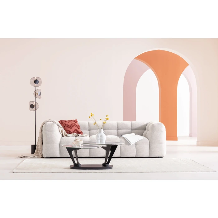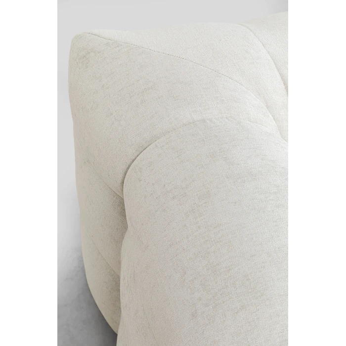 En generös 3-sitssoffa som förenar modern form med mjuk, inbjudande komfort. Den crèmefärgade chenillen har en sammetslik känsla som ger rummet ett varmt och ombonat uttryck, samtidigt som den neutrala tonen är lätt att matcha med både trä, sten och metall.