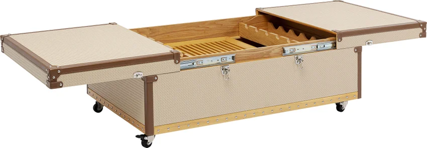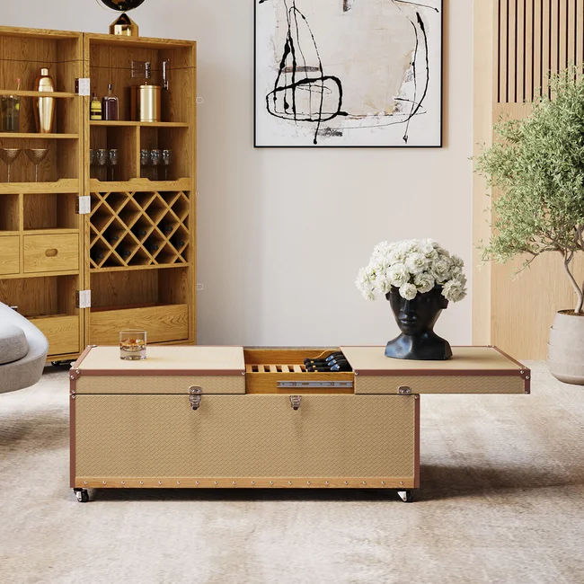 - Soffbord i beige med integrerad hemmabar, 36,5 x 120 x 75 cm (H/B/D)