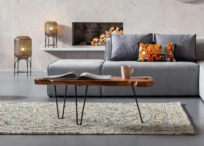Rustikt soffbord av trädstammens råa, naturliga form