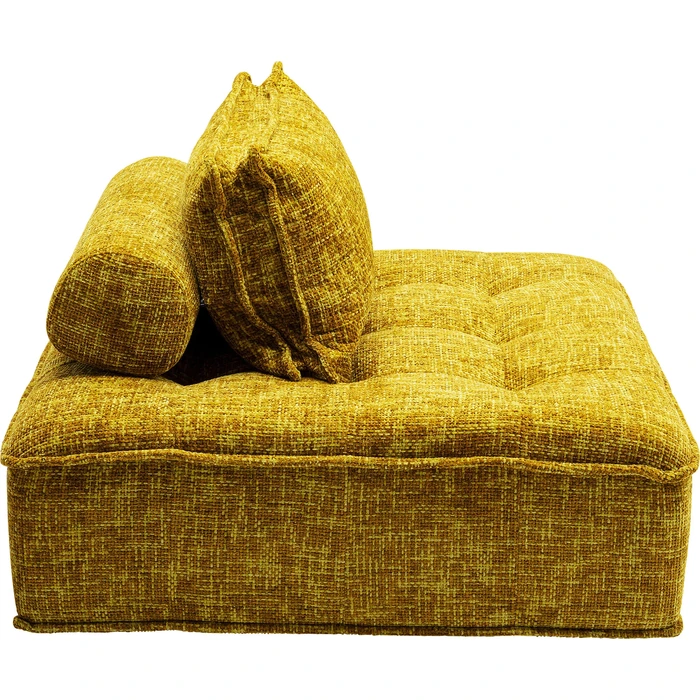 En generös soffmodul i gult som ger mjuk komfort och ett välkomnande uttryck. Den omslutande formen och lösa kudden gör det enkelt att skapa en skön sittplats.