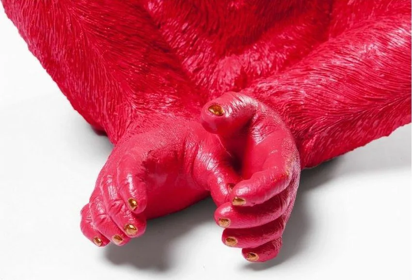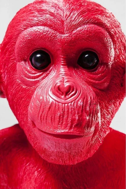 Sparbössa apa i stark klarröd färg. Praktisk och fin som dekoration.