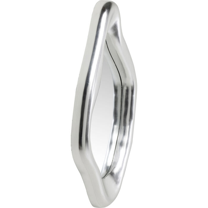 Den organiskt formade ramen gör denna väggspegel till ett konstverk. Dess utstrålning är livlig och hypermodern. Tack vare sin svepande form ser spegelobjektet särskilt bra ut på väggutsprång, i nischer och på smala väggar. Finns även som Spegel Floating Silver, 117 cm.