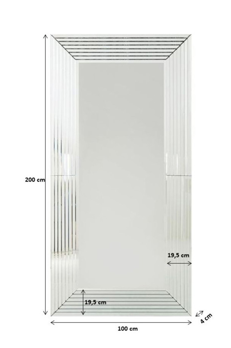 En spektakulär stor helkroppsspegel där även ramen är i spegelglas. Spegeln är stilren i sin design men ändå en showpiece som ”gör” rummet! Spegeln kan hängas både stående och liggande och finns även i en mindre storlek. Material: bakstycke av lackad mdf och front i spegelglas. Mått: 200 x 100 x djup 4,5 cm. Vikt: 51,5 kg.