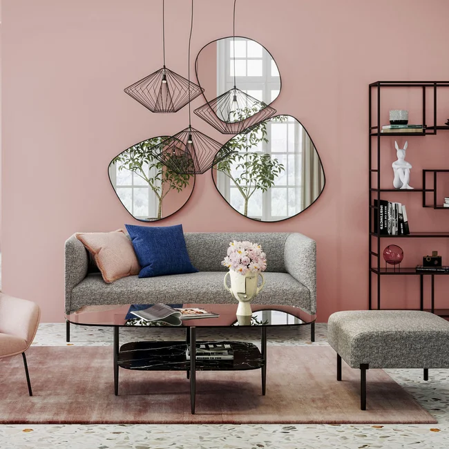Du behöver inte vara ett Feng Shui-fan för att gilla denna väggspegel. På grund av sin organiska retroform fungerar den som ett konstobjekt och den mjuka, rundade formen ser väldigt harmonisk ut.