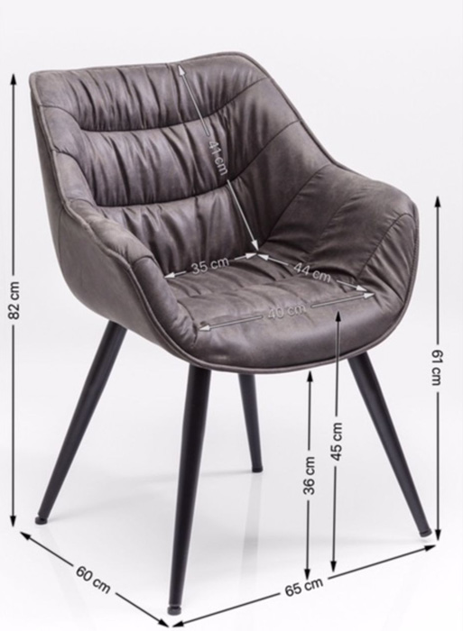 Stol Comfort Grå är som namnet antyder bekväm med sin mjuka omfamnande sits med bra armstöd. En snygg designstol till bra pris. Material: Sits av fanerad plywood och polyuretanskum. Underrede i lackat svart stål och klädsel i syntetmocka. Sitthöjd 46 cm. Yttermått: höjd 82 x bredd 65 x djup 60 cm. Underredet kommer omonterat. Obs, säljes i 2-pack, pris per styck.