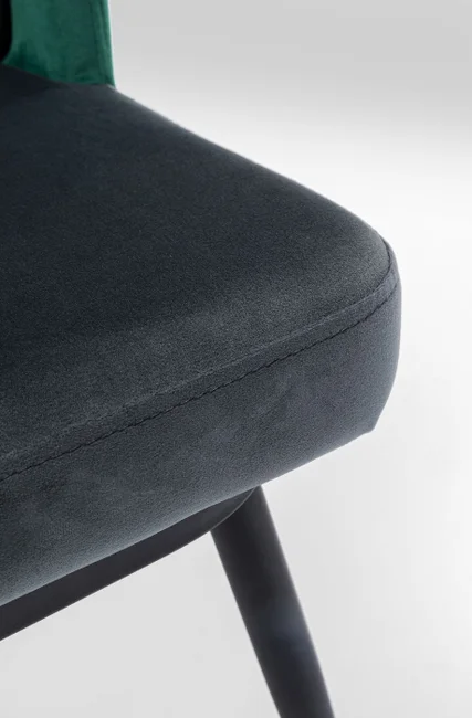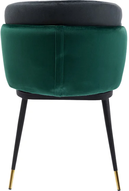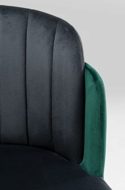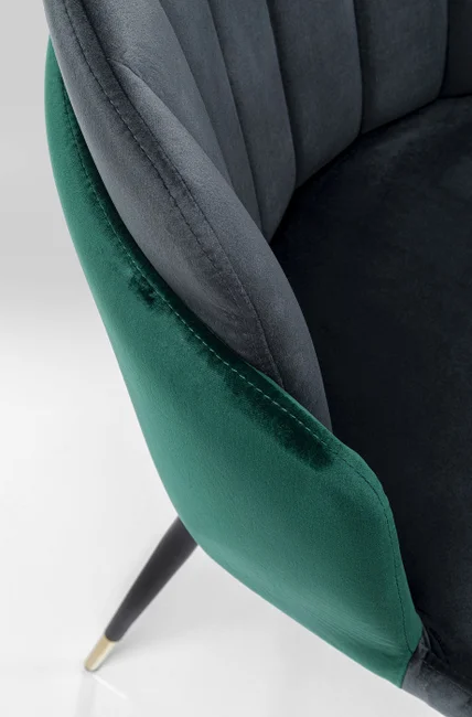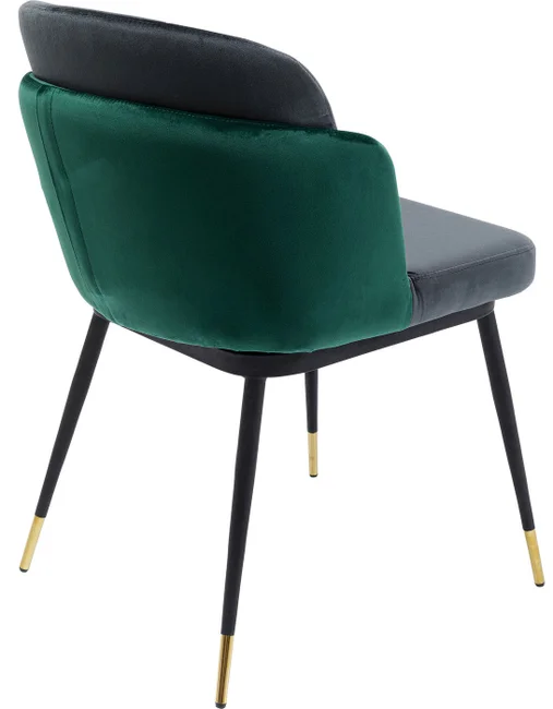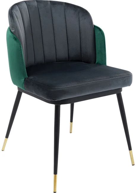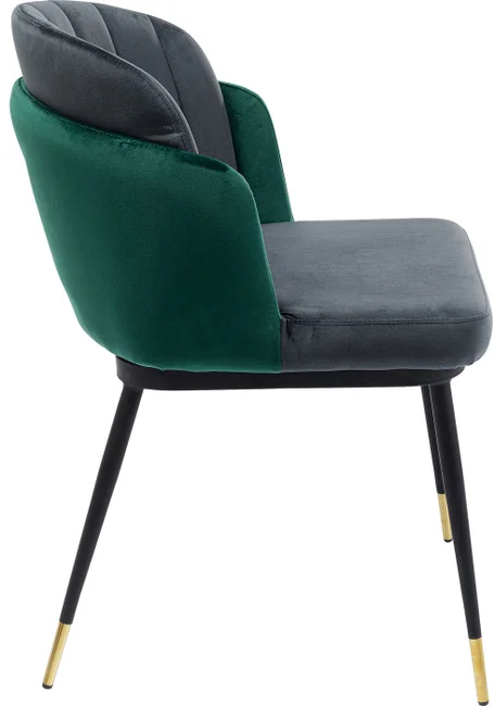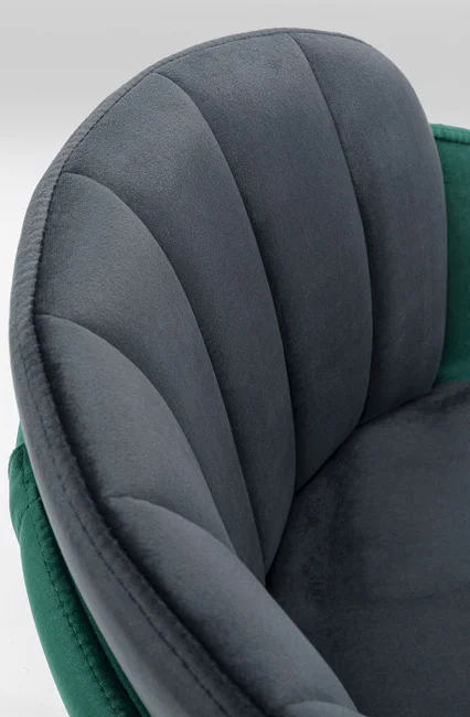 Denna trendiga sammetsstol utlovar mysiga sittplatser, även när middagsbjudningen varar lite längre. Dess exklusiva design gör den till den visuella mittpunkten i vardagsrummet och matsalen. Det runda ryggstödet smyger sig mot din rygg, den snygga quiltningen och skal-formen i grått och grönt är en fröjd för ögat. Denna sammetsstol ger moderna rum retrostil och kan elegant kombineras med bord av trä, glas eller marmor.
