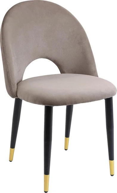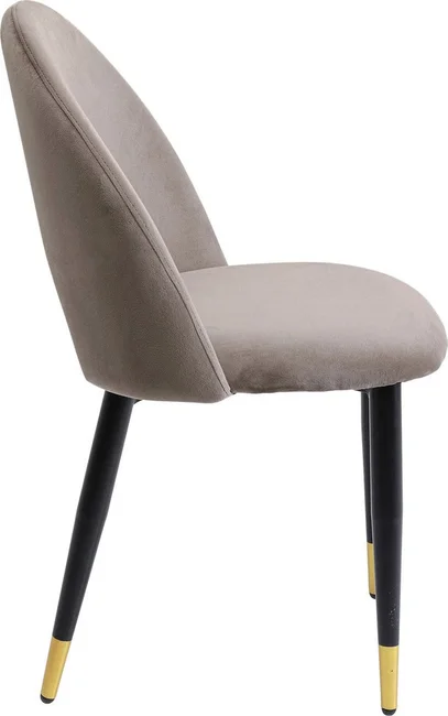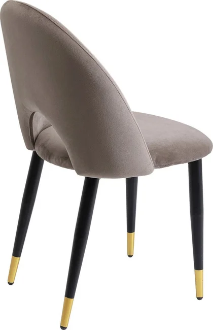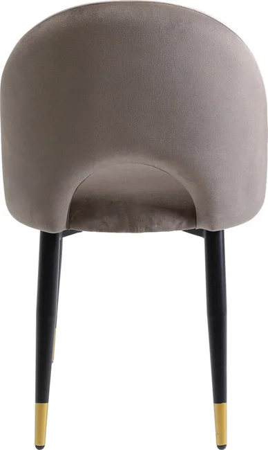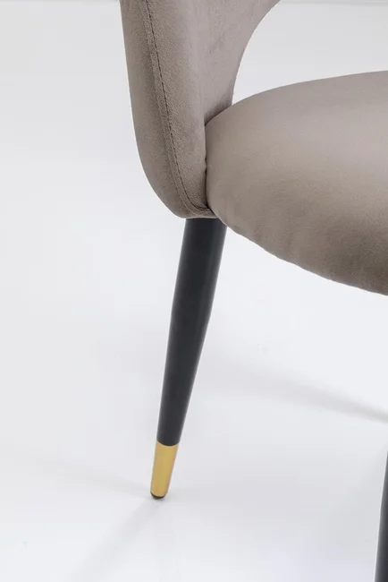 - Stoppad stol med svarta ben och sammetslena överdrag i taupe/grått som ger ett intryck av värme tack vare sitt bruna inslag