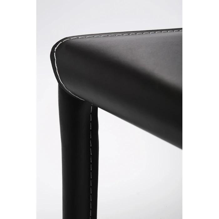 Stolen är klädd i slitstark fiberimitation av läder som är mycket lätt att rengöra – perfekt för matsal och kök. Benen är klädda för att skapa ett enhetligt uttryck, och den vita dekorationssömmen ger ett stilrent och diskret designlyft. Trots sin stabila konstruktion väger stolen endast strax under 6 kg, vilket gör den enkel att flytta vid dukning och städning.