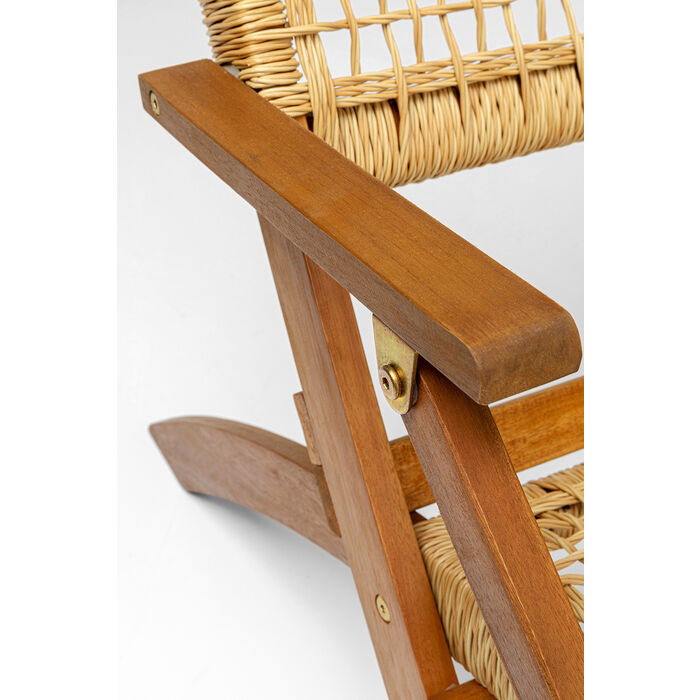 Stolen i konstrotting och trä är en avkopplande hopfällbar trädgårdsstol, fin som fåtölj för balkongen eller som ett avslappnat tillskott till sittgruppen i vardagsrummet. Skuren med en naturligt attraktiv figur. Trä och flätad look är de perfekta följeslagarna för stora växter. När du har fått nog av att koppla av kan den praktiska sitsen förvaras för att spara utrymme.