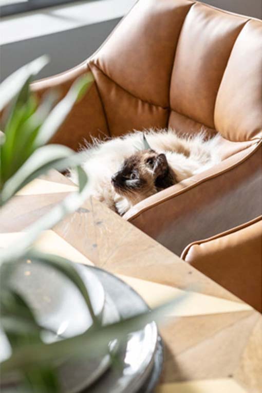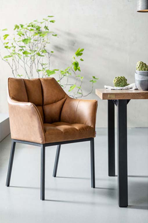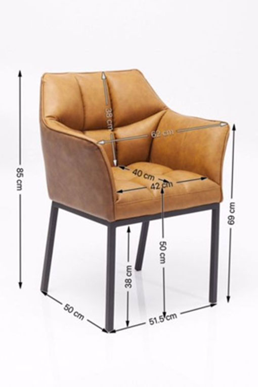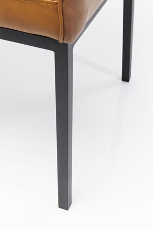 Den ursnygga stolen kommer med cognacs-färgad klädsel och är elegant i minsta detalj med mycket bekväm sittkomfort. Stolen är stadig och rejäl vilket gör att den även passar i väntrum, lobby och som mötesstol. Stolen har en stram design med sin rut-mönstrade stoppning och ben i svarta fyrkantsrör som tjusigt möter upp välvda armstöd och puffad vaddering. Thinktank bevisar att klädseln inte behöver vara plysch. Ett snyggt fyrkantigt quilt-mönster och lätt utsvängda, vadderade armstöd ger den ett modernt utseende. Den mjuka kolabruna och varma läderlooken passar bra till svala, glänsande ytor. Förutom mattsvarta, varma jordtoner är denna stol särskilt effektiv med guld och mörkt trä.