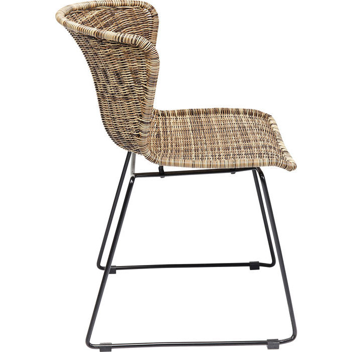 En riktigt snygg stol i rottinglook men tålig nog för utomhusbruk på balkongen, terassen eller direkt på gräsmattan. Stolens rottinglika utseende och korgformade sits ger ett trivsamt och varmt intryck som passar bra till andra naturmaterial och trä. Stolens böjda rygg ger behagligt stöd och god sittkomfort. I serien finns även Loungestol Zanzibar och Stol med armstöd Zanzibar. Tål belastning upp till 150 kg.