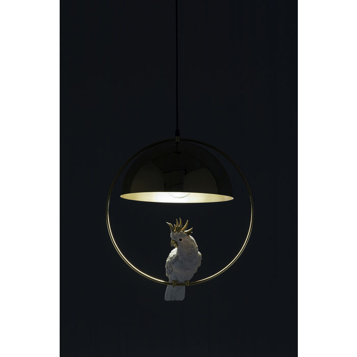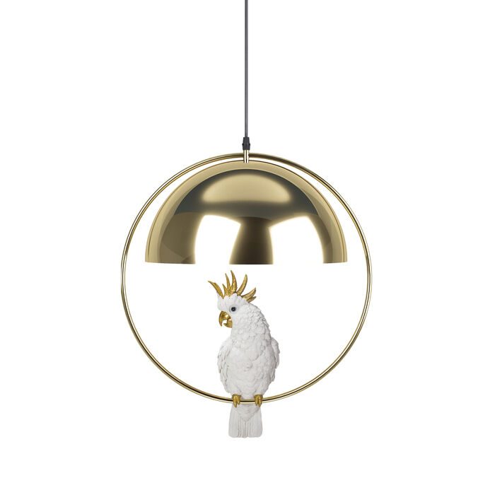 Ett extraordinärt belysningsobjekt tillverkat för hand med stor uppmärksamhet på detaljer, vilket avslöjar sin ägare som en sann individualist. Med sin unika, kreativa design skapar denna gyllene taklampa med tillhörande fågel en ö av ljus med en individuell karaktär i hela hemmet. Pendellampor är den perfekta lösningen för att belysa rum med indirekt ljus. Ljusdesigners rekommenderar att man är kreativ när man hänger upp lampor, vill du exempelvis förstärka sidobordet bredvid soffan, häng kakaduan lågt.