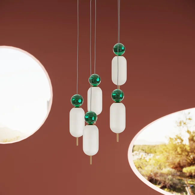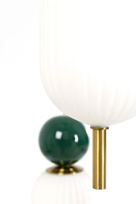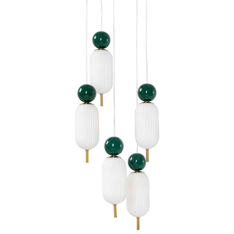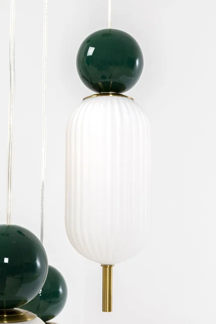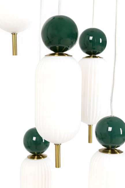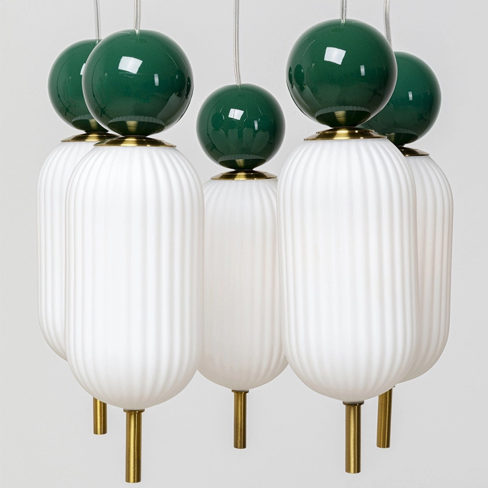 - De fem eleganta lampskärmarna är gjorda av glas i vitt och grönt