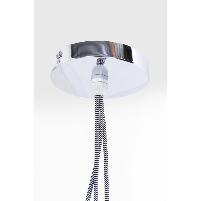 - En charmig pendellampa med tre vita, olika formade skärmar, vars högkvalitativa kablar lindas runt en stadig gren.