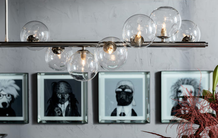 - Liksom satelliter kretsar de sfäriska globerna runt vardagsrumslampan
