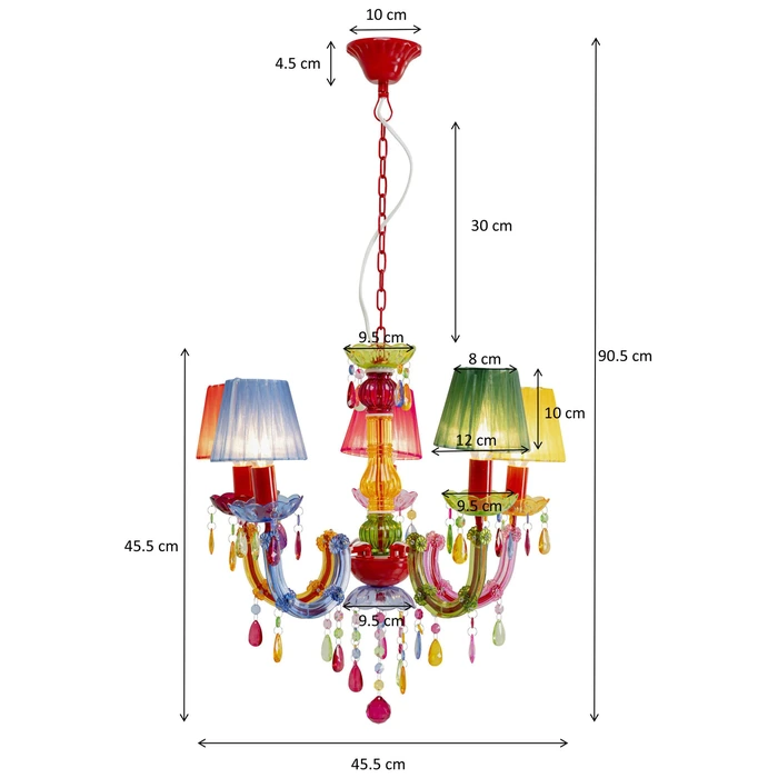 - Taklampa med fem färgade lampskärmar