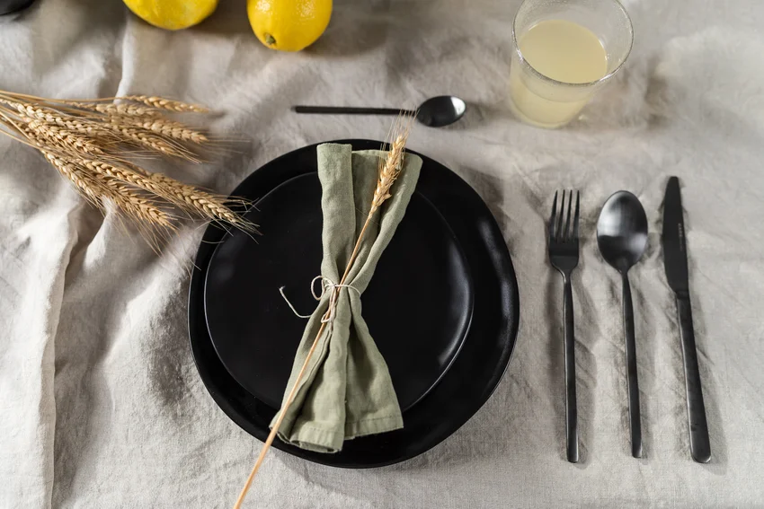 - Djupsvart assiett i populär keramisk stil och handgjord look