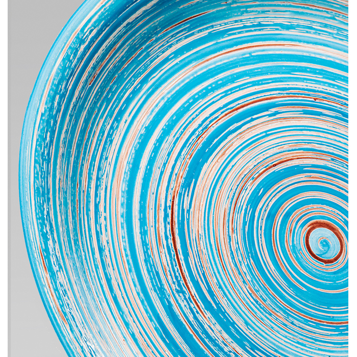 - Rund keramisk tallrik i blått och kräm med spiralmönster
