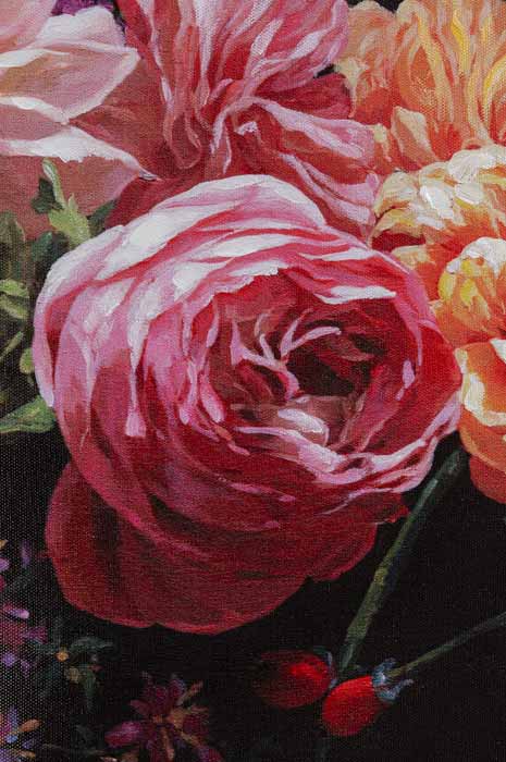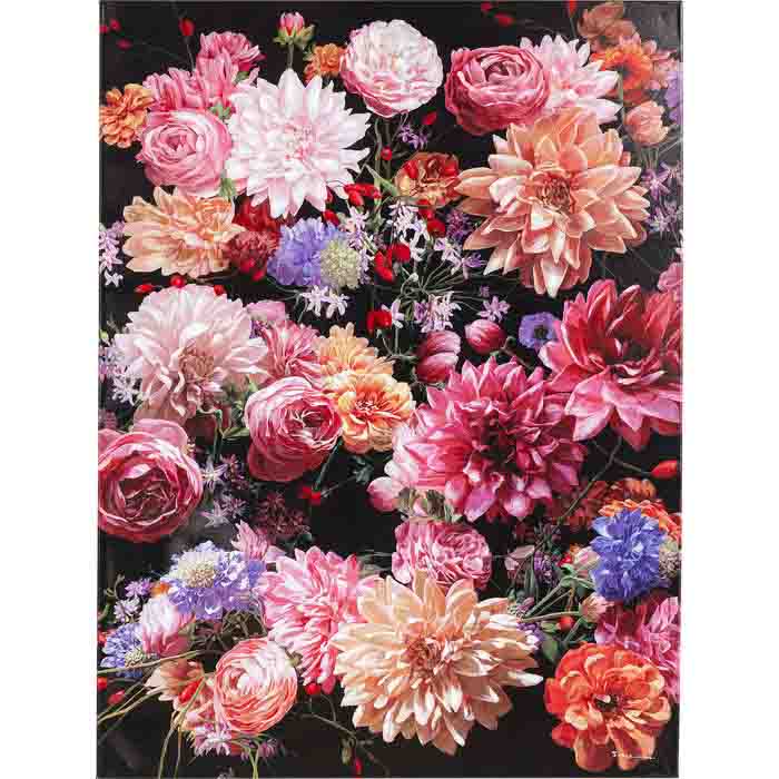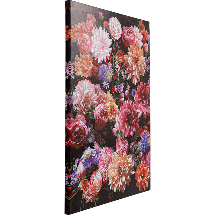 En tavla för dig som älskar blommor - här på canvasduk med svart bakgrund. Tavlan är både romantisk och modern och en effektfull inredningsdekor i såväl en minimalistisk inredning som i det extravaganta, detaljrika rummet. En spotlight på denna tavla och inredningen är klar! Tavlan finns även i större storlek - se Tavla Blomster, Canvas 200x140 cm.