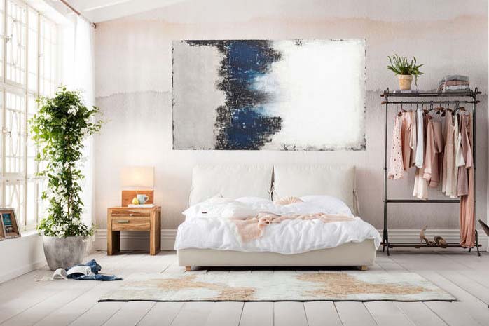 En stor, vacker målning i abstrakt motiv som för tankarna till vindpinade klippor, hav och sanddyner. Tavlan har en harmonisk färgskala som kombineras väl med både olika inredningsstilar och färgval. Handmålad i akryl på canvasduk. Material: ram i obehandlad furu, canvas duk av bomull samt akrylfärg. Mått: höjd 210 x bredd 120 x djup 4,8 cm. Vikt: 10,5 kg.