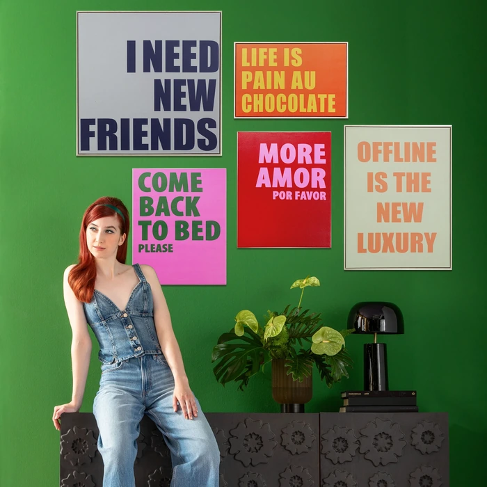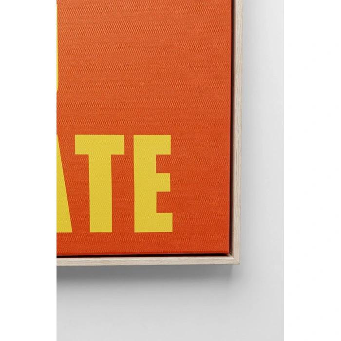 Trycket är framställt på konstpapper och ramas in av en stilren ram i ljus trälook som harmonierar med färgskalan. Kombinera gärna med metalliska detaljer, marmorytor eller minimalistiska möbler för att förstärka det moderna intrycket. Tavlan är lätt att montera och skapar omedelbart liv, karaktär och värme i rummet – en dekorativ detalj med både charm och attityd.