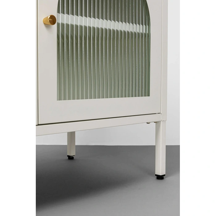 TV-bänk Naxos kombinerar medelhavsinspirerad elegans med praktisk förvaring i ett stilrent och harmoniskt uttryck. De räfflade glaspartierna och de diskreta guldfärgade handtagen ger möbeln en lätt och sofistikerad karaktär som lyfter vardagsrummet.
