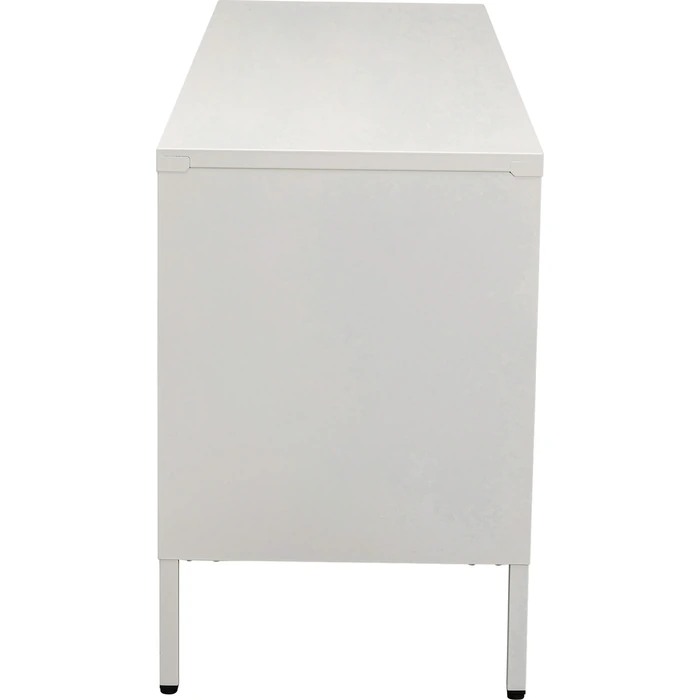 Med sex rymliga fack erbjuder TV-bänken gott om plats för medieutrustning, dekorationer och tillbehör. Konstruktionen i pulverlackerat stål säkerställer hög stabilitet och lång hållbarhet, vilket gör möbeln lika funktionell i vardagen som dekorativ i sin helhet. En perfekt balans mellan ordning, design och kvalitet.