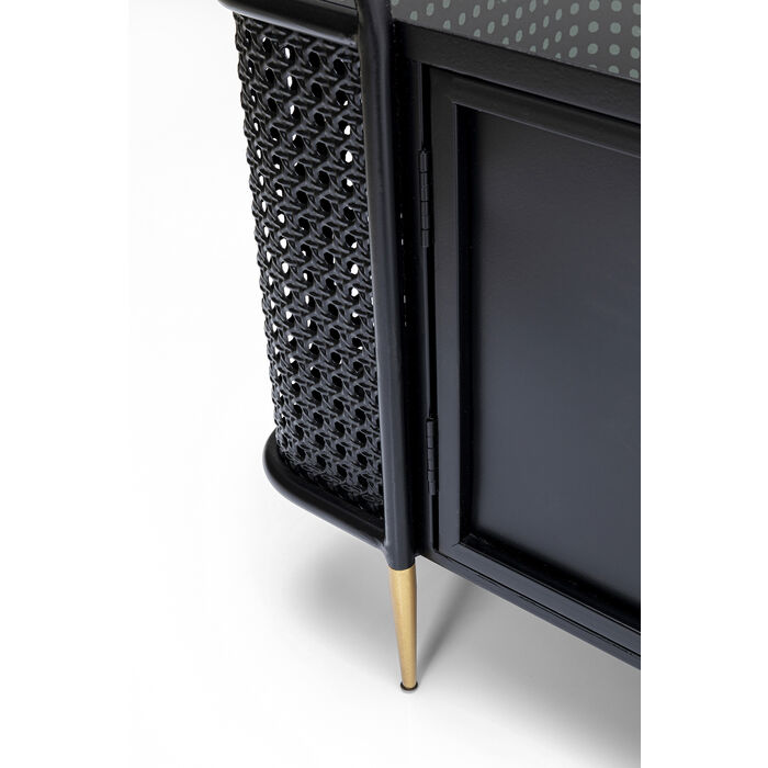 - Wienskt flätverk av metall på sidorna ger TV-bänken ett individuellt utseende av kvalitet.
