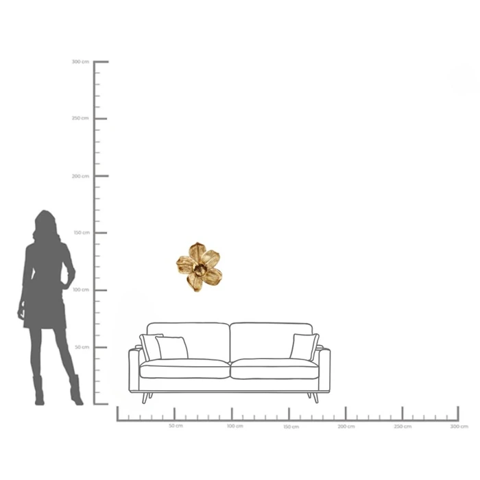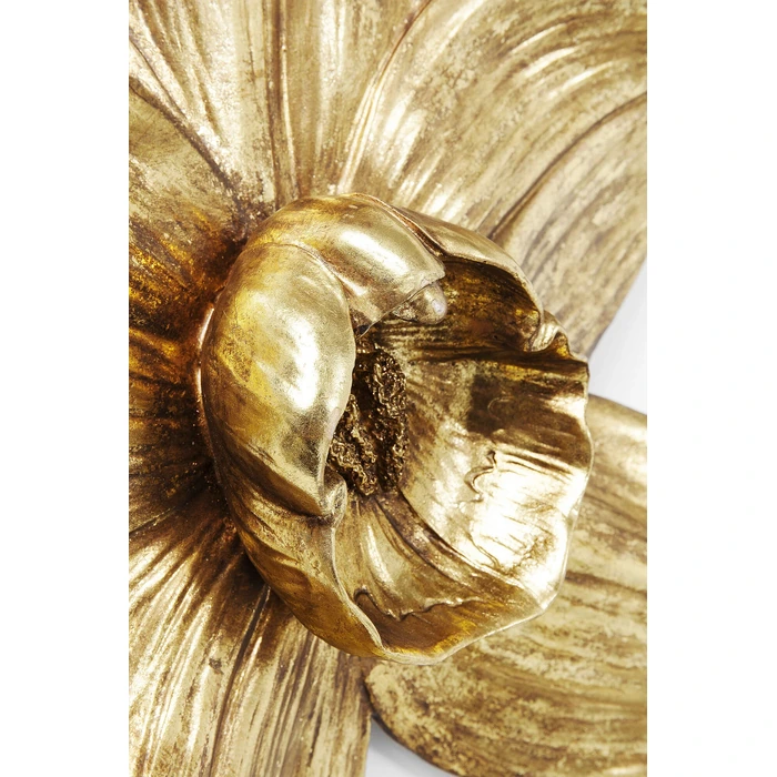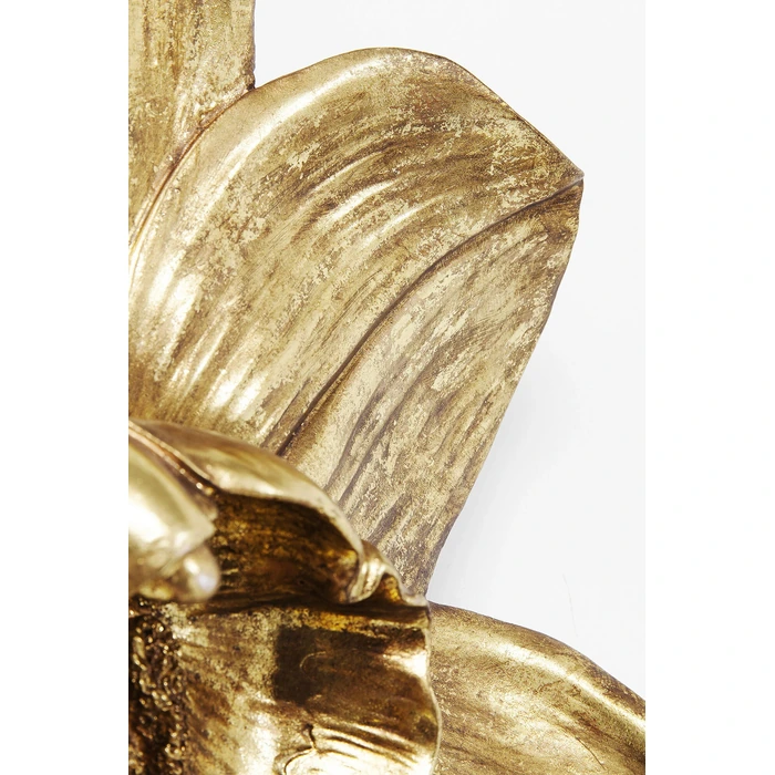 Skulptural väggdekoration formad som en orkidé, en blomma i varm guldton. Lyfter snabbt känslan i rummet och passar lika bra solo som i en tavelvägg.