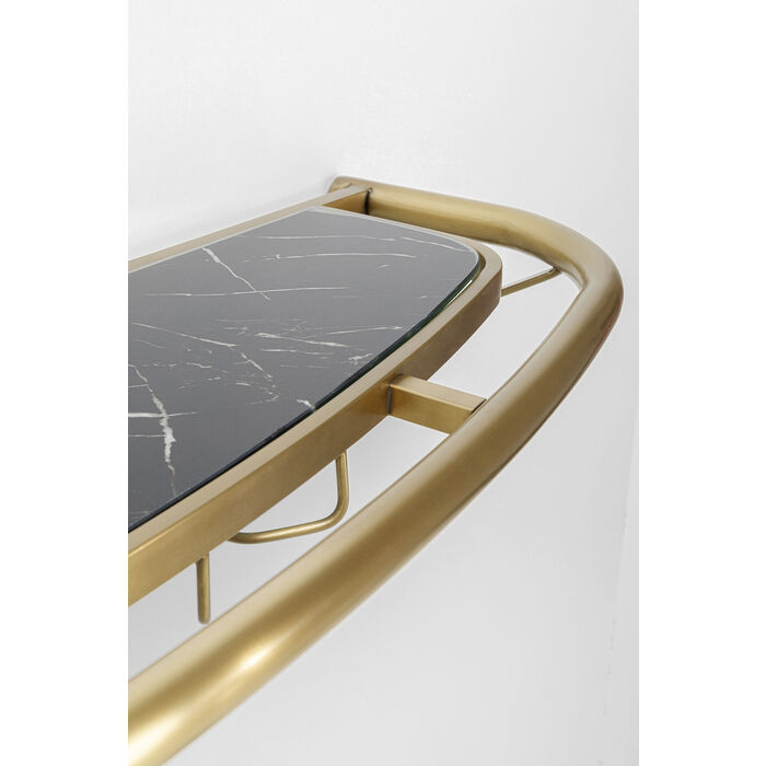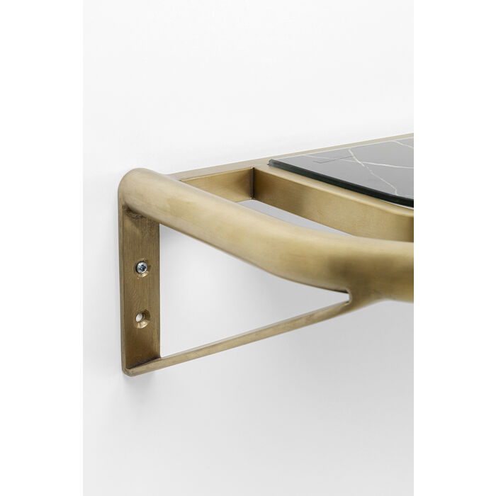En läcker vägghylla i italiensk stil med färgerna guld och svart. Glasskivan har laminerat glas i marmor-look.