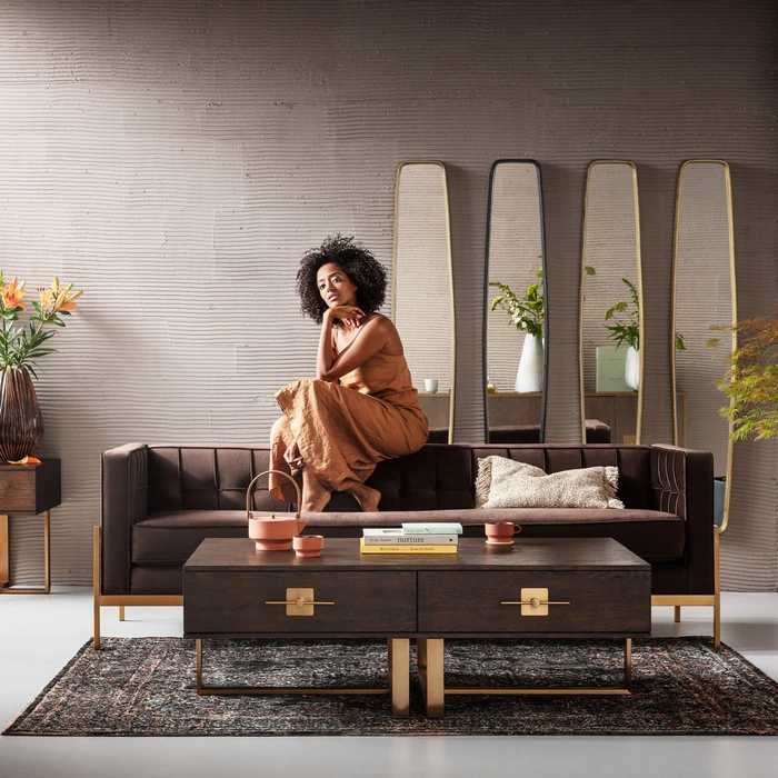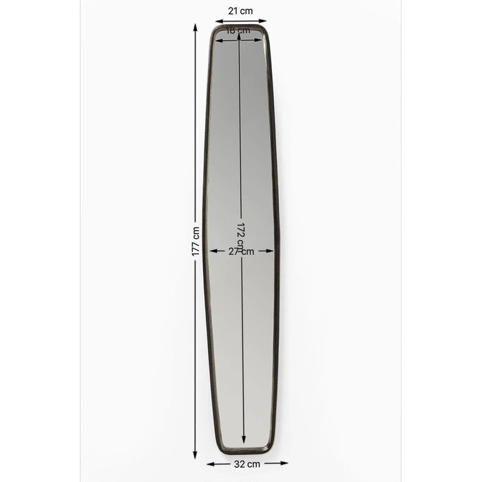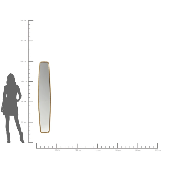 Spegeln hängs vertikalt och är idealisk i hallen för en snabb helhetskoll, i sovrummet som ett stilrent komplement eller i vardagsrummet som en ljusreflekterande detalj. Den höga formen hjälper till att förstärka rymd och ljus i rummet och fungerar lika bra som solitär som tillsammans med andra väggobjekt.