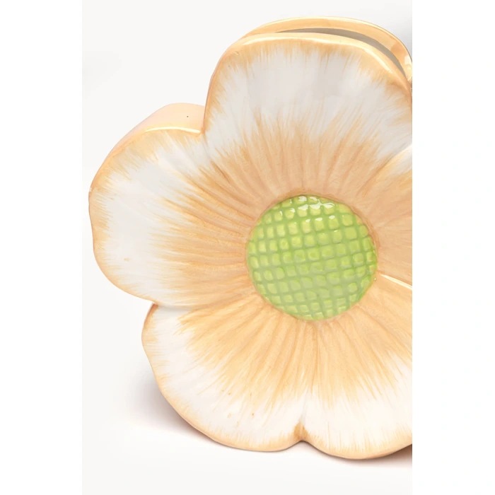 Vasen Blossom Dream är en dekorativ vas som lyfter buketter och blir ett blickfång i rummet. Den passar lika fint på sideboard, konsolbord och soffbord som i mindre stilleben.Den blomformade siluetten och den gula tonen ger ett ljust, lekfullt uttryck. Handmålad dolomit med fin glaserad känsla gör varje vas unik och ger ett hantverksnära intryck.