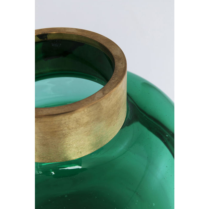 Stor dekorativ vas i klargrönt glas med mässingskant upptill