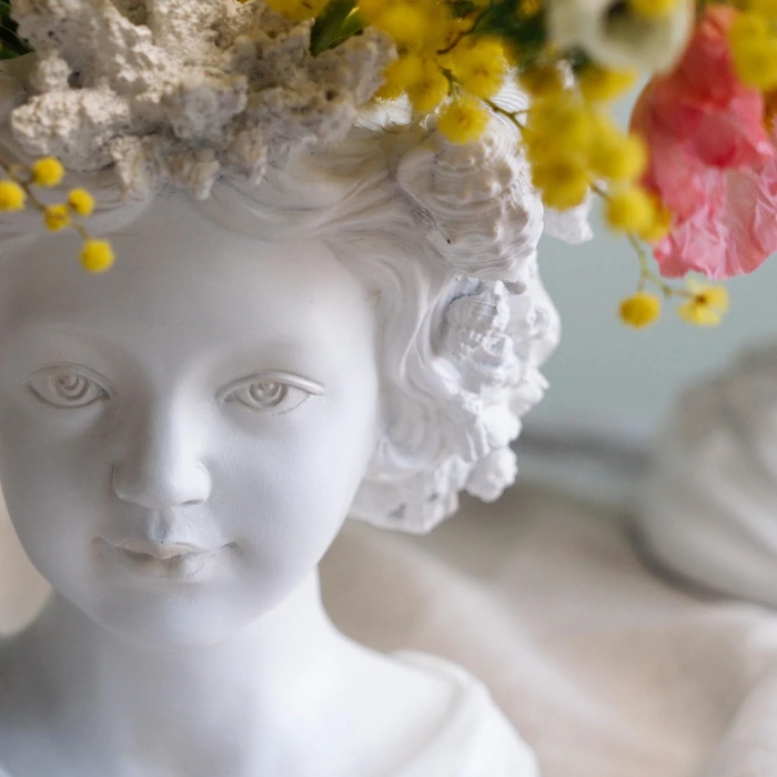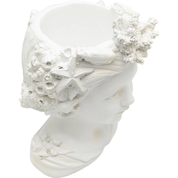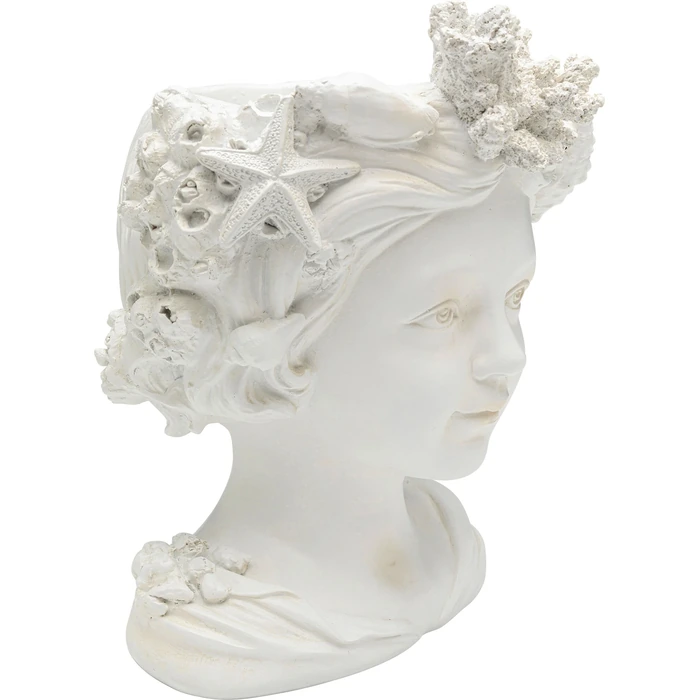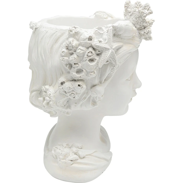 Vas Coral Girl är en dekorativ vas med konstnärlig karaktär och en tydlig maritim känsla. Den kvinnliga silhuetten pryds av en detaljrik krona inspirerad av koraller och snäckor, vilket ger ett organiskt och exklusivt uttryck.