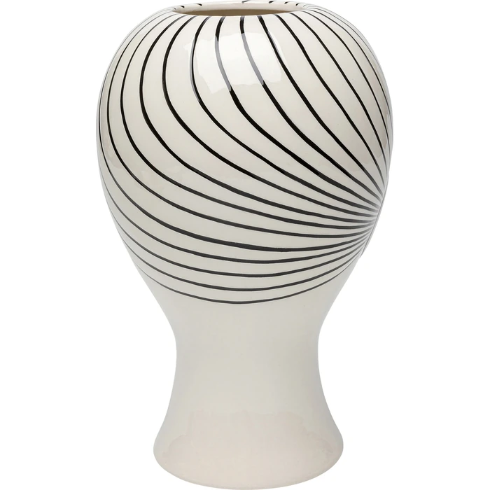 Med sin skulpturala form fungerar vasen lika bra som solitär dekoration som med blommor eller dekorativa grenar. Den tidlösa färgskalan gör den lätt att kombinera med både minimalistiska, skandinaviska och mer lekfulla inredningsstilar. Ett dekorativt objekt som drar blickarna till sig och tillför konstnärlig elegans till rummet.