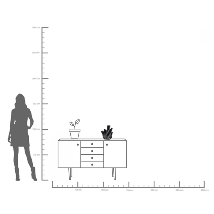 Vas Flame är en dekorativ vas med ett kraftfullt och konstnärligt uttryck. Den flaminspirerade formen med skarpa linjer och matt svart yta ger vasen en dramatisk och modern karaktär som direkt fångar blicken.