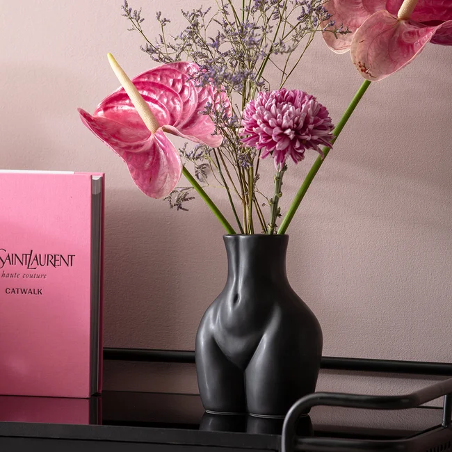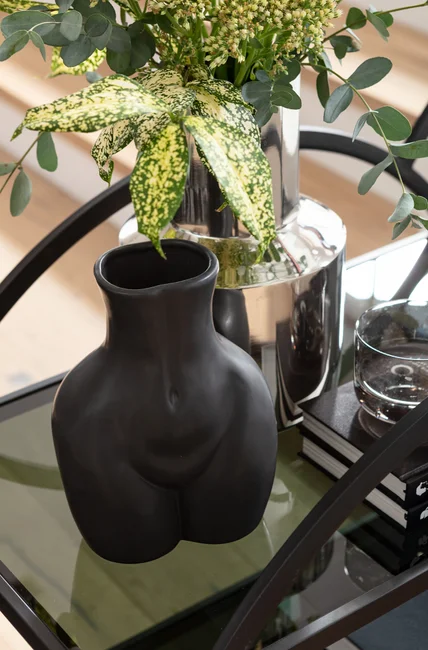Svart kroppsskulptur och vas med feminin design - 21,5 x 16 x 12 centimeter (H/B/D)