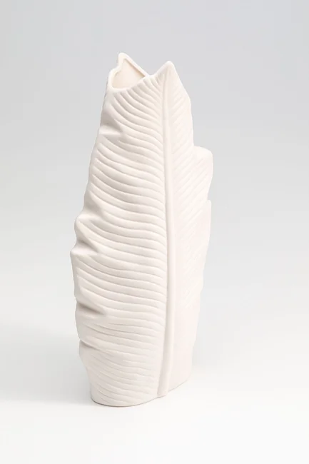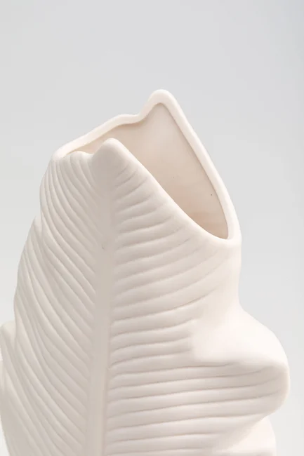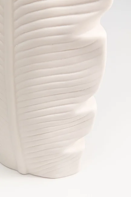 Vit vas i keramik, formad som ett blad. Fin både som vas för blommor och som den är i sin enkelhet.