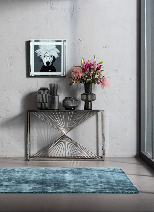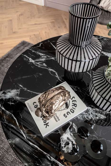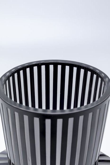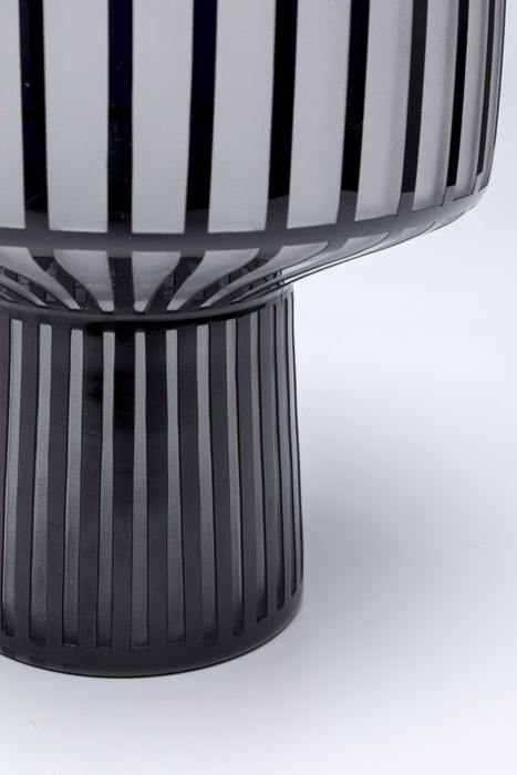• Exklusiv design: Blomvas tillverkad i satiniserat glas i ljusgrått med glänsande svarta ränder.