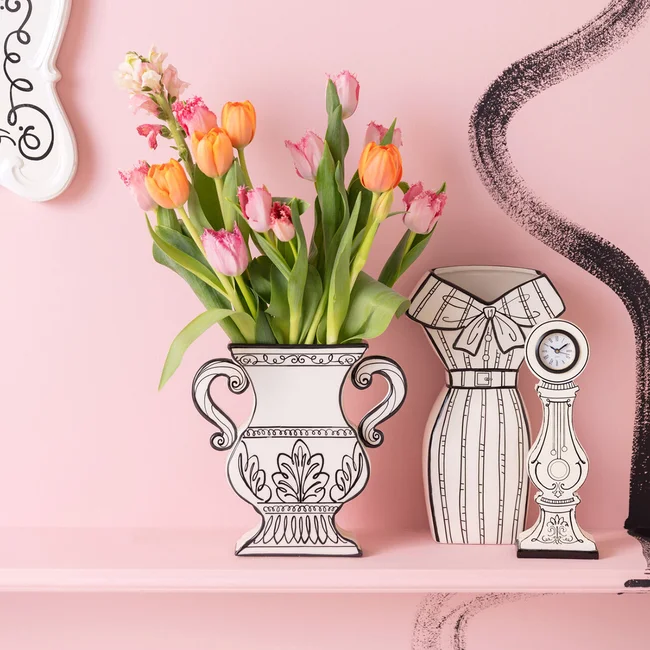 Som en originell vas i linjekonst är denna blomvas ett blickfång som kommer att ge ditt hem det där lilla extra. Som ritat med penna på blankt papper blir denna vas berättande och sagolik. Formad som en gammaldags och kunglig amfora. Dekorobjektet kan användas med eller utan blommor och kommer att vara en absolut höjdpunkt på alla bord, skänkar, sideboards eller hyllor trots sina enkla, stilrena och neutrala färger.