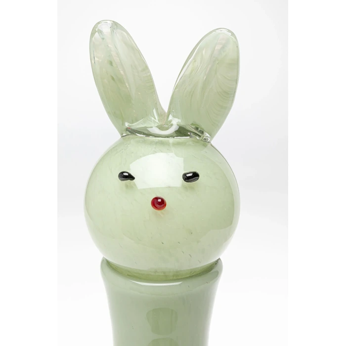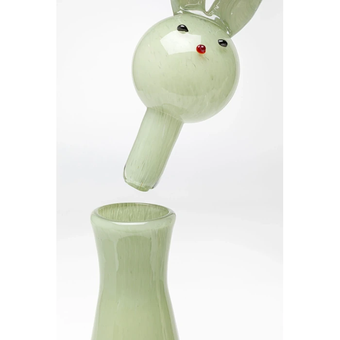 Handgjord glasvas i pastellgrönt med avtagbart lock i kaninform – dekorativ både med och utan blommor.