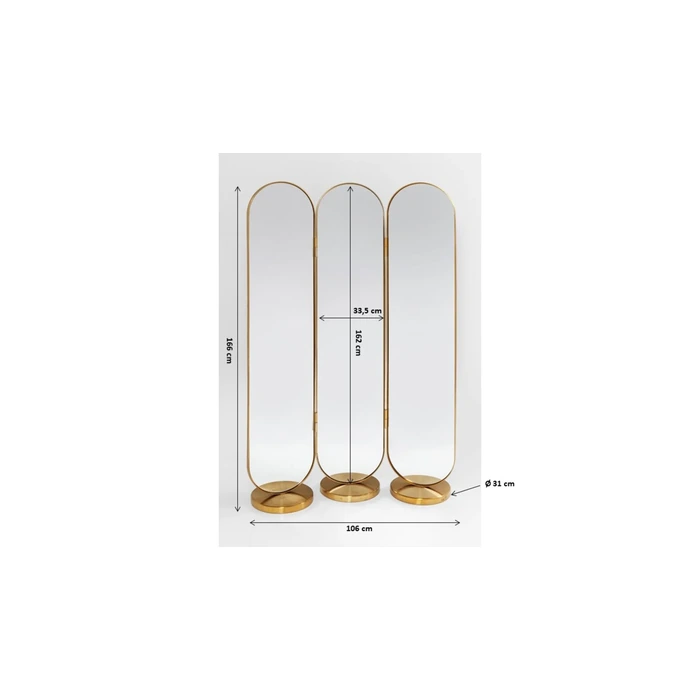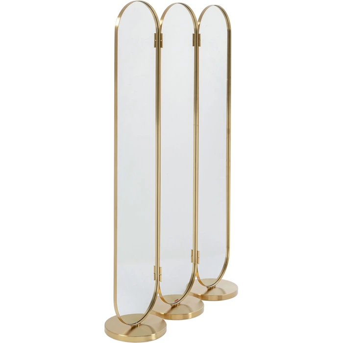 Skärmen fungerar lika bra som dekorativ fristående spegel som rumsdelare, och blir ett naturligt blickfång i moderna, eleganta eller Art Deco-inspirerade hem. Perfekt för att skapa zoner, dölja förvaring eller ge rummet en sofistikerad hotellkänsla.
