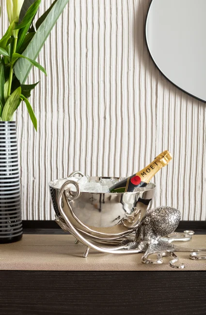 En fantastiskt festlig vinkylare som kommer att pryda rummet som en dekorativ skulptur. Den kan till och med sitta kvar efter festliga tillfällen eftersom den ser attraktiv ut även när den inte behövs för kylning. Ett riktigt samlarobjekt med glamorös attityd – och såklart massor av armar!