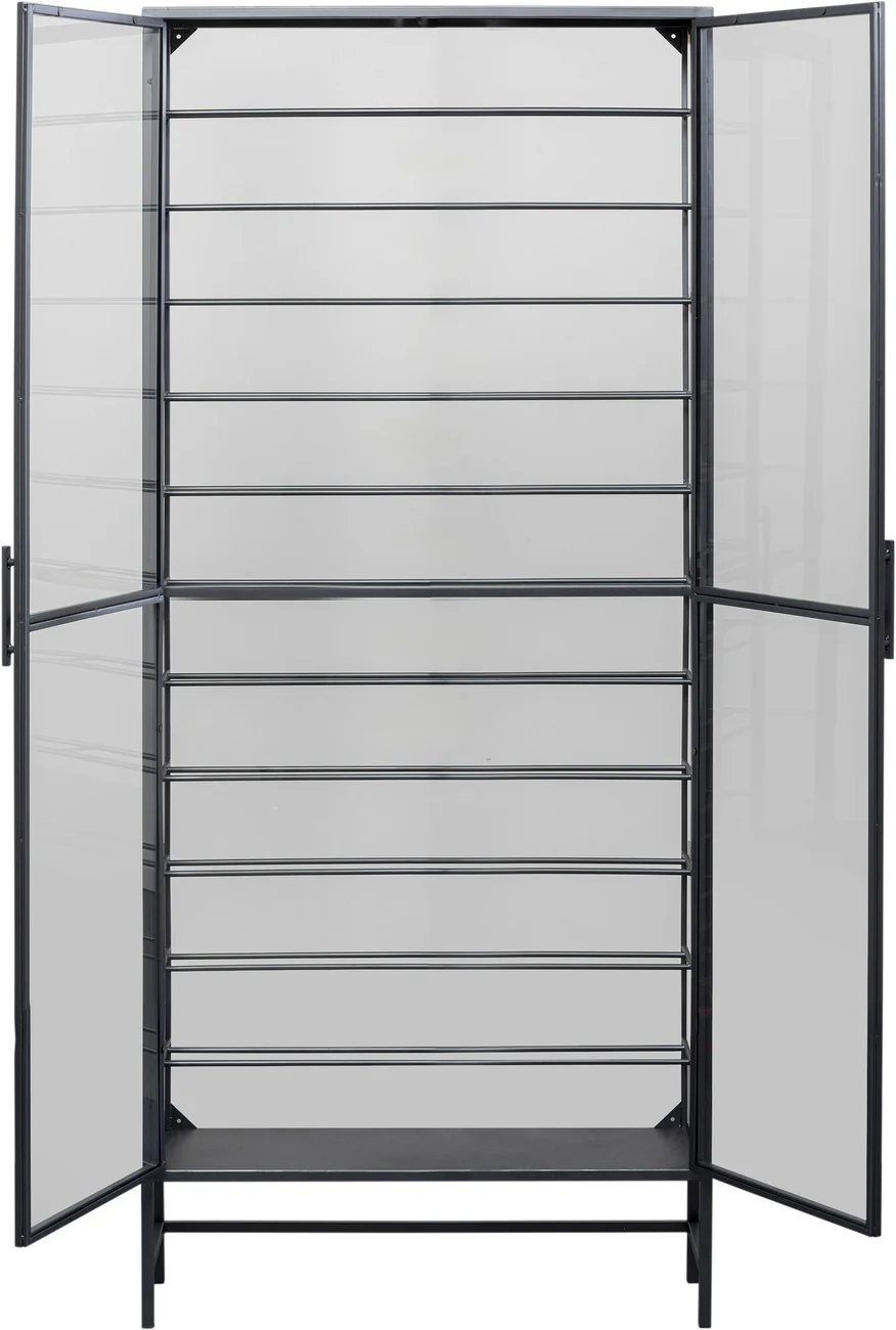 Vitrinskåp Vinova Svart är en elegant och funktionell lösning för vinälskaren. Skåpet är tillverkat i pulverlackerat stål i gråsvart ton och omges helt av härdat säkerhetsglas, vilket skapar en öppen, luftig känsla och samtidigt skyddar flaskorna från damm. Med plats för upp till 22 vinflaskor liggande, kombinerar det industridesign med praktisk förvaring. Passar lika bra i köket som i vardagsrummet eller vinkällaren – ett statement i både stil och funktion.